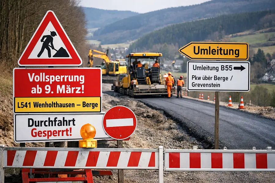 L541 zwischen Wenholthausen und Berge: Vollsperrung ab 9. März