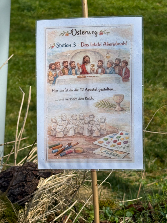 Der Stationenweg war in der Zeit vor Ostern begehbar und bot eine wunderbare Gelegenheit, Bewegung in der Natur mit Momenten der Besinnung zu verbinden. Viele nutzten die Strecke für einen Spaziergang oder eine Fahrradtour und ließen sich dabei von den Ideen und Impulsen inspirieren.