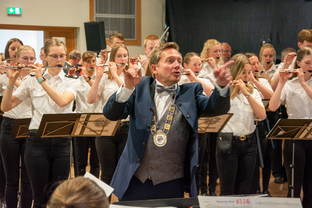 Nach einem gemeinsamen Frühstück machte sich die Festgemeinschaft, begleitet vom Musikverein Lyra, auf den Weg zur Vogelstange. Mehrere hundert Salweyer hatten sich eingefunden und warteten gespannt auf den Beginn des Schießens.