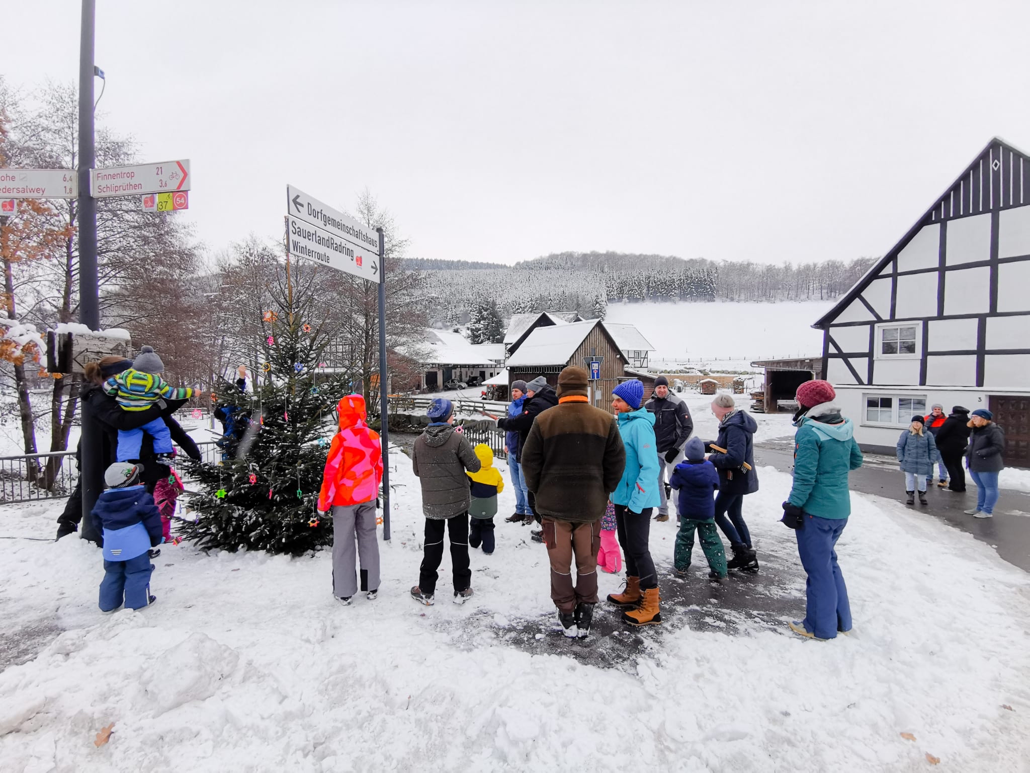 Am Samstag den 02.12 gegen Nachmittag herrschte reges Treiben am frisch aufgestellten Weihnachtsbaum im Unterdorf. Zahlreiche Kinder hatten sich eingefunden, um den im Kindergarten gebastelten Baumschmuck endlich aufzuhängen. Kinder wie Erwachsene hatte sichtlich Spaß und das Ergebnis konnte sich sehen lassen. Im Anschluss gab es Kinderpunsch und Lagerfeuer auf Nowak´s Hof.