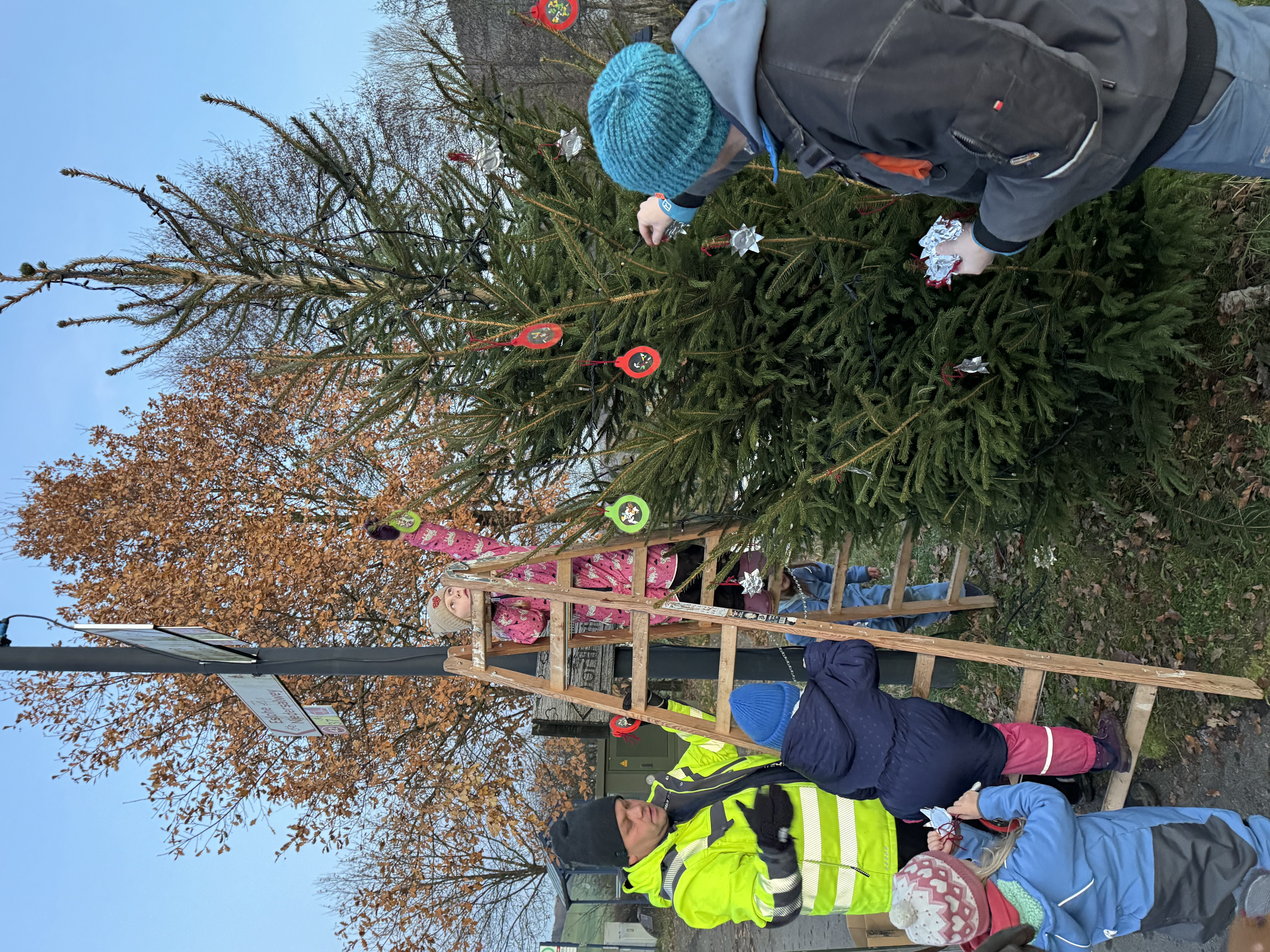 Am vergangenen Samstag, den 30. November, fand in Obersalwey das traditionelle Weihnachtsbaumaufstellen statt. Viele Kinder aus dem Ort hatten im Vorfeld fleißig gebastelt und freuten sich gemeinsam mit den Helfern, den prachtvollen Baum, der von Tobias Röhrig gespendet wurde, am Spielplatz festlich zu schmücken.