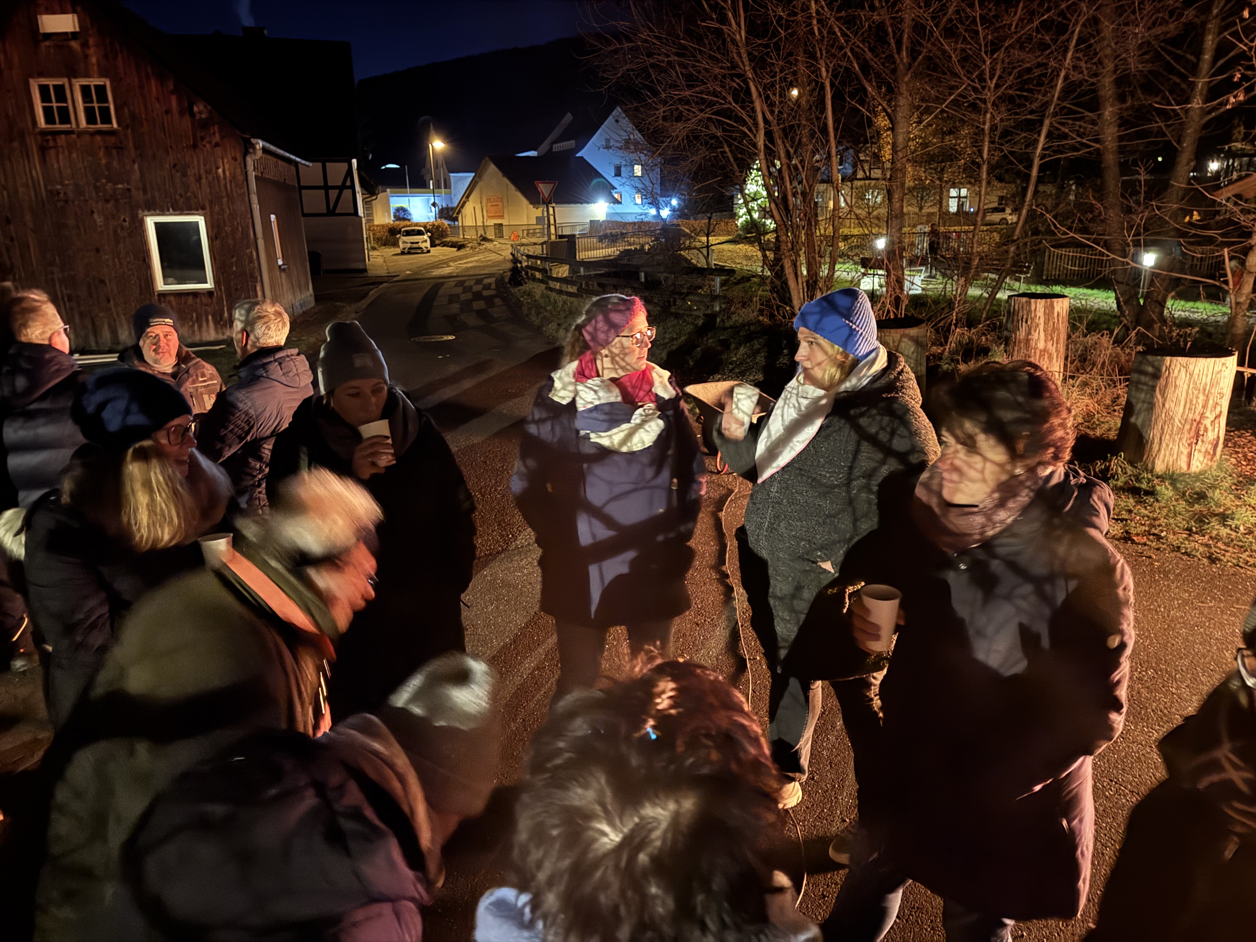 Im Anschluss daran wurde die Veranstaltung bei einem gemütlichen Beisammensein fortgesetzt. Die Kinder genossen einen heißen Kinderpunsch und Süßigkeiten, während sich die Erwachsenen bei einem Lagerfeuer und Glühwein auf Nowaks Hof aufwärmen konnten.